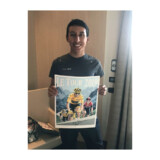 This wonderful Giclée print features Simon's iconic painting featuring Egan Bernal in the yellow jersey leading team-mate Geraint Thomas and Steven Kruijswijk at the 2019 Tour De France, and celebrates Egan's historic victory, a first for a Colombian.