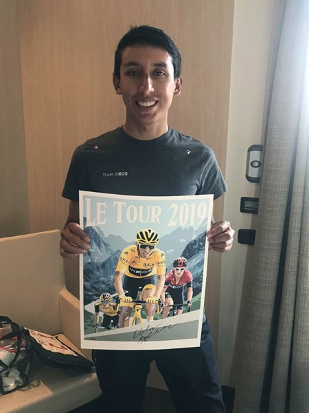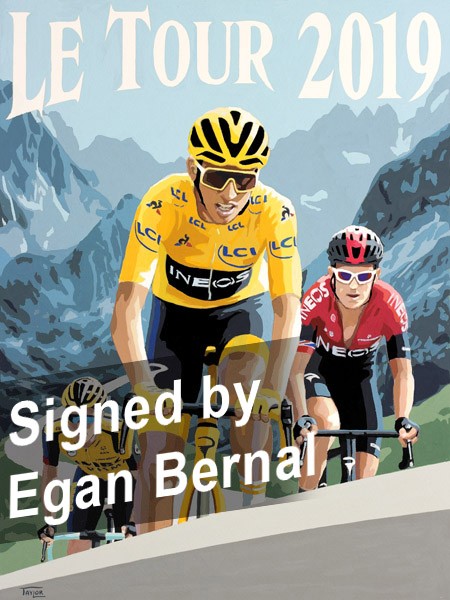 Le Tour 2019 Giclée print by Simon Taylor, signed by Egan Bernal