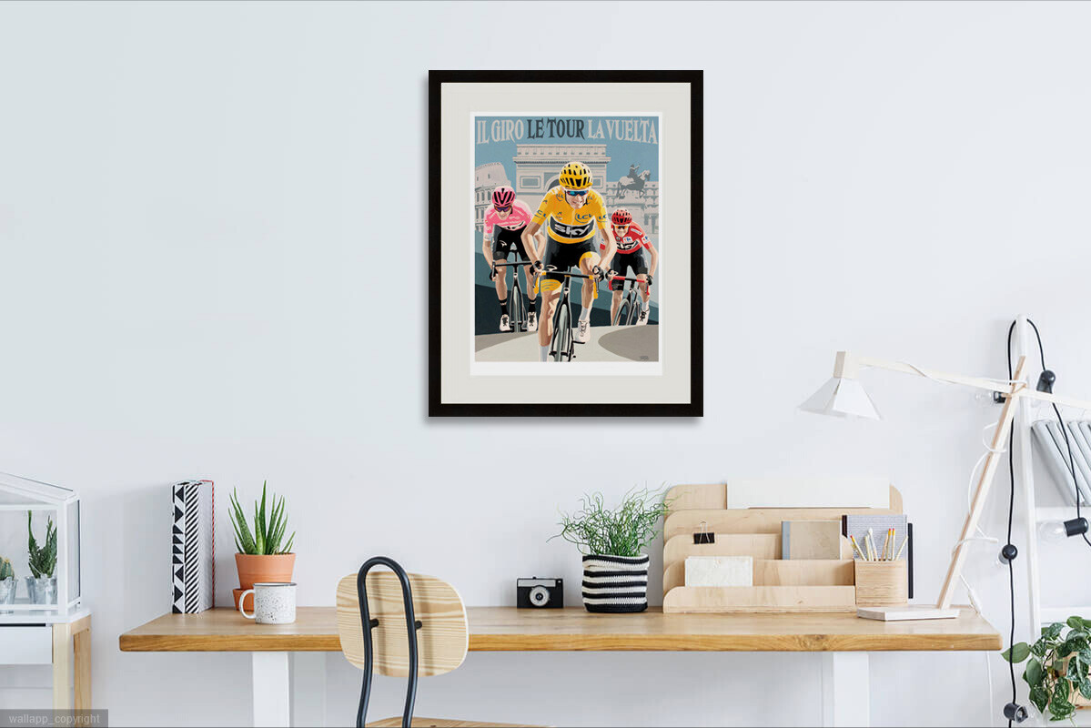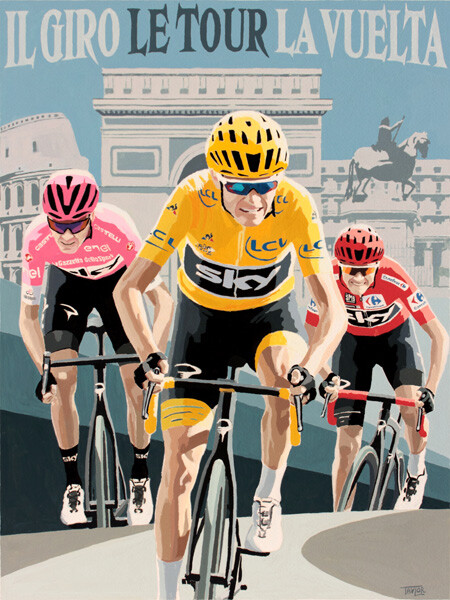 This wonderful Giclée print features Simon's iconic painting celebrating Chris Froome's historic Tour Treble, the original painting owned by the man himself!