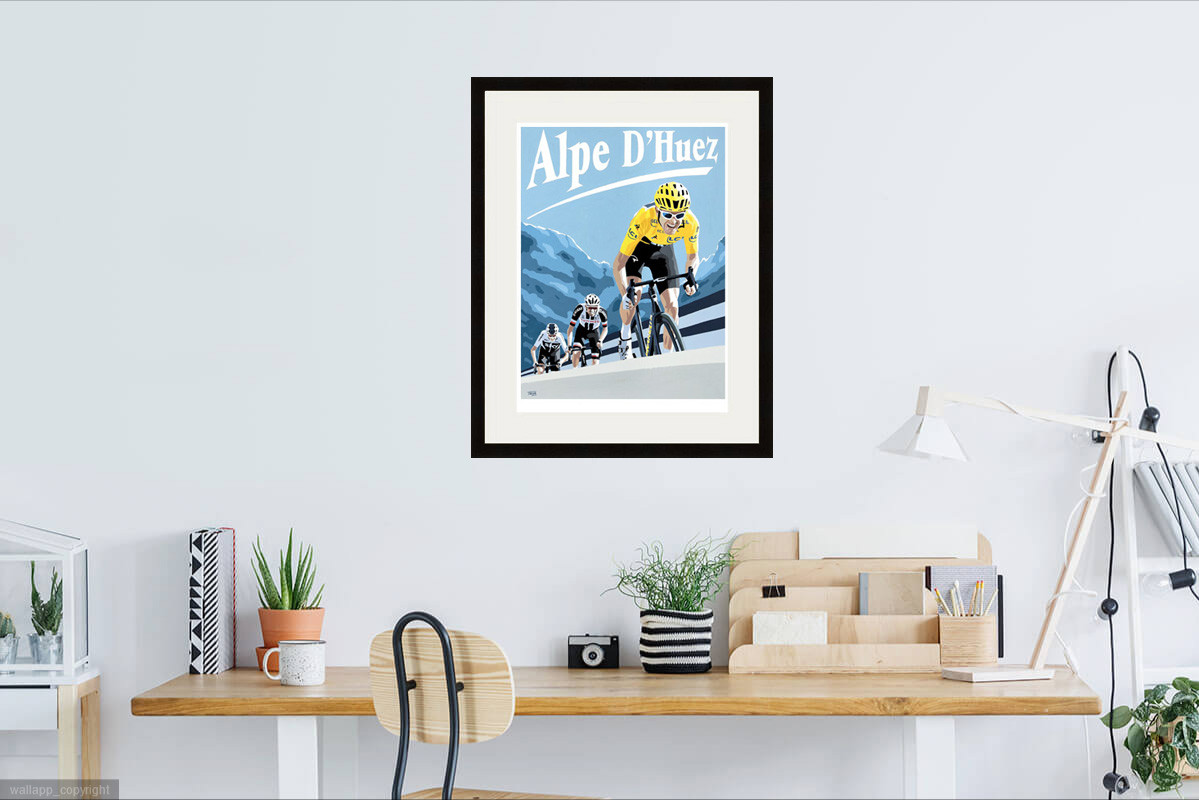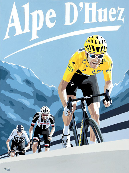 Celebrating Geraint's incredible career. This fabulous Giclée print is a reproduction of Simon's painting depicting Geraint leading Tom Dumoulin and Chris Froome to a magnificent stage victory on Alpe D'Huez, en route to securing the Tour de France title in 2018, his greatest and most historic win.