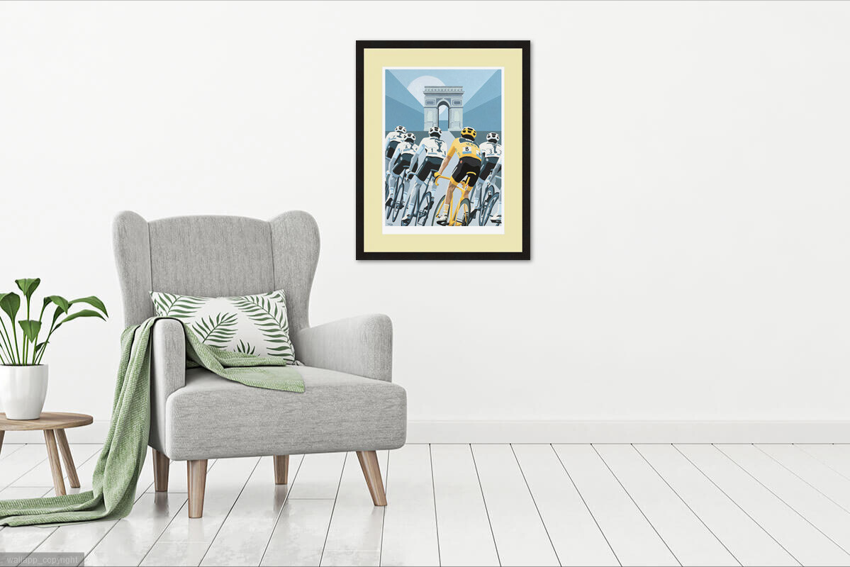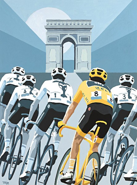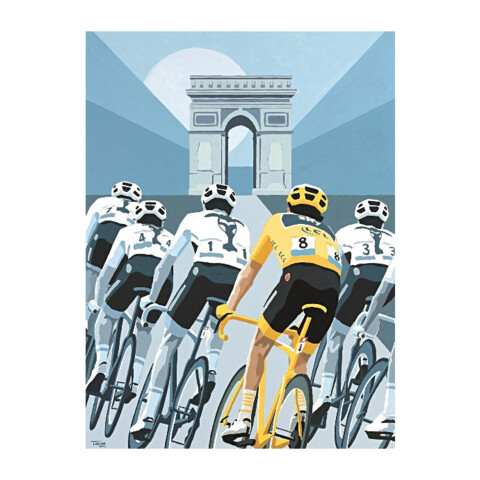 This stylish Giclée print is a reproduction of Simon's iconic painting featuring Team Sky, with Geraint Thomas in the yellow jersey, on the Champs-Élysées at the 2018 Tour De France, and commemorates Sky's last Tour victory, and Geraint's first.