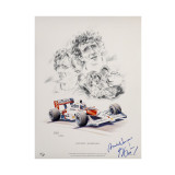 One of my earlier editions with sketched portraits and an illustration of the McLaren MP4/5 released in 1994. Each print measures 450 x 326mm approx. and is printed on fine quality paper. The edition is limited to 850 copies.