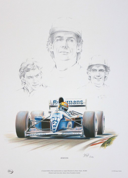 This formula 1 print features subtle pencil sketched portraits of Ayrton Senna, and with him at the wheel of the Williams FW16. This edition was an official Ayrton Senna Foundation print and sold out within a month of release. I retain a small number of artist proof copies which are available for sale.