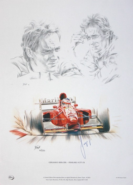 Gerhard Berger - Ferrari 412T1/B, limited edition print by Simon Taylor, autographed by Gerhard Berger