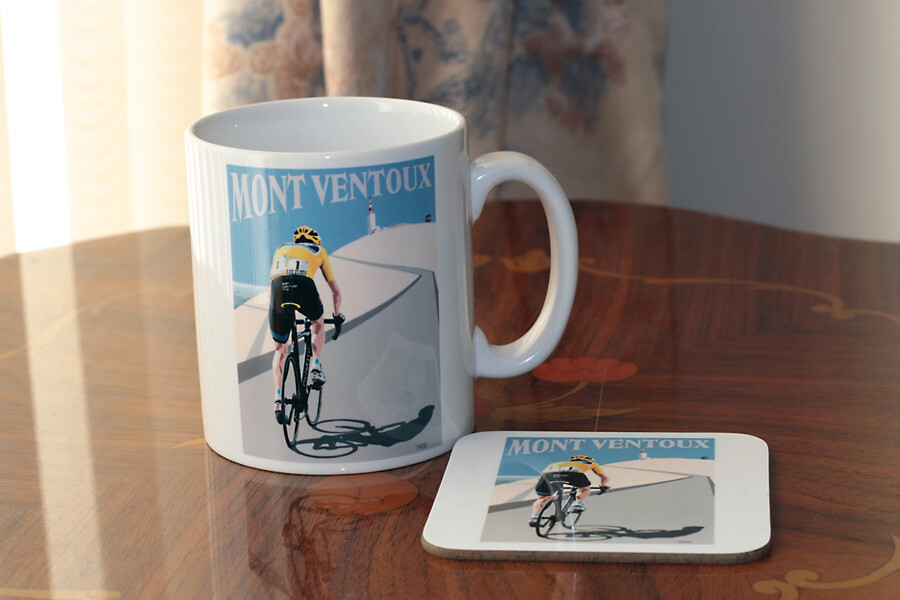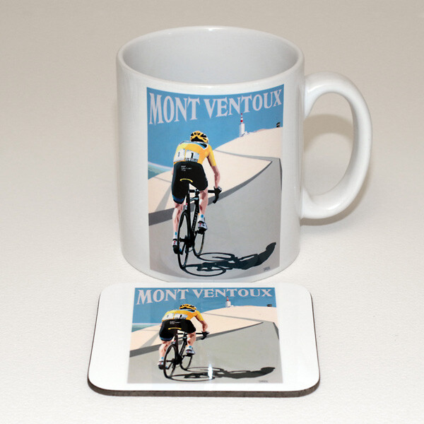 Froome on Mont Ventoux 10oz mug with matching coaster. Mug is microwave and dishwasher safe.