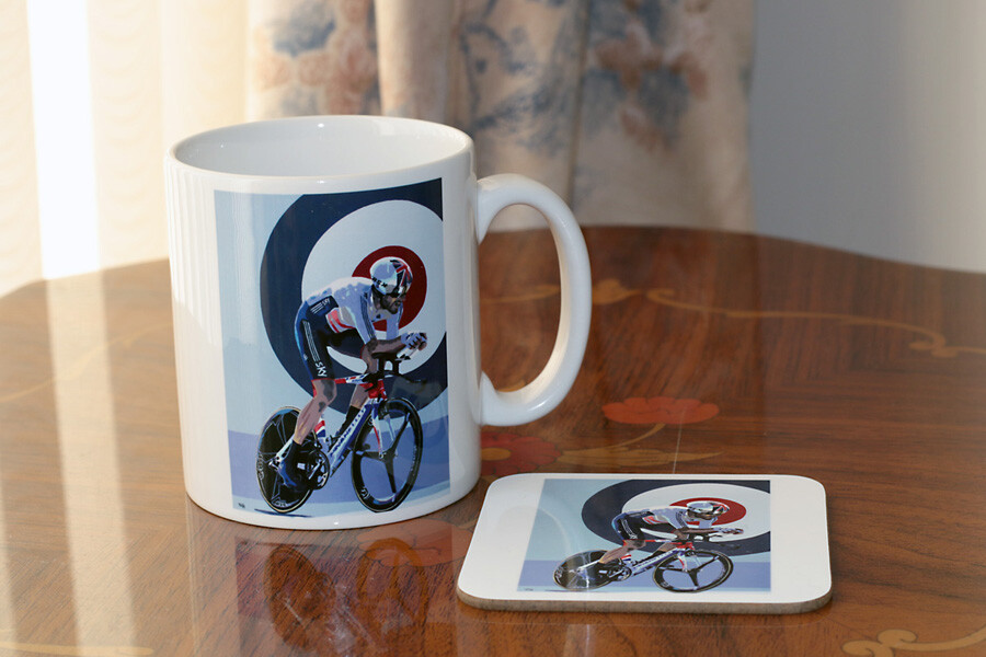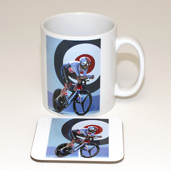 Sir Bradley Wiggins World Time Trial 10oz mug with matching coaster. Mug is microwave and dishwasher safe.