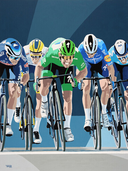 This wonderful stunning large format painting commemorates Cav's historic 34th Tour de France stage victory, equalling the record held by the great Eddy Merckx.
