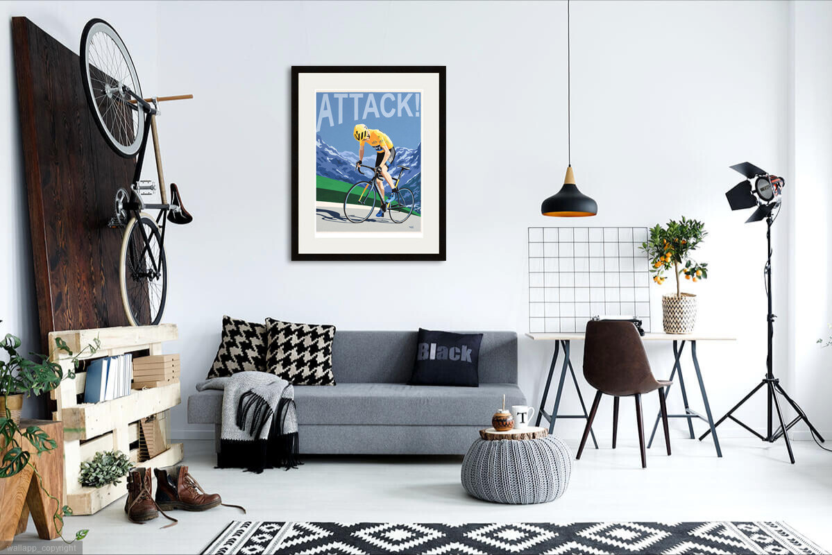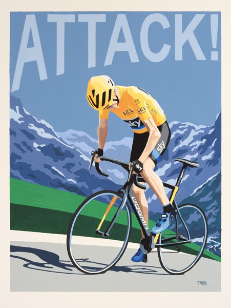 Simon's iconic painting featuring Chris Froome in classic attack mode! This stunning painting captures the essence of Froomey's attacking style of racing and the large format size makes for a dramatic work of art.