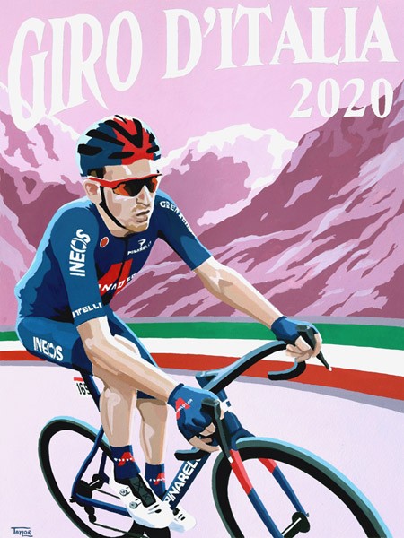 Simon's stylised painting celebrating Tao Geoghegan Hart's wonderful 2020 Giro D'Italia victory.